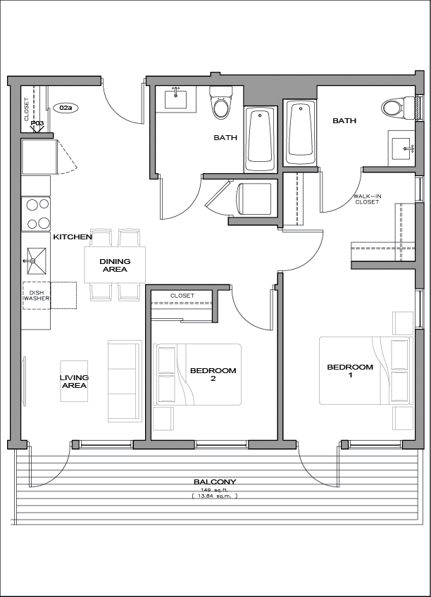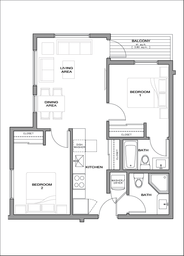 The 2 bedroom units are spacious and well-lit, with a corner location offering additional windows and natural light. Perfect for small families or roommates.